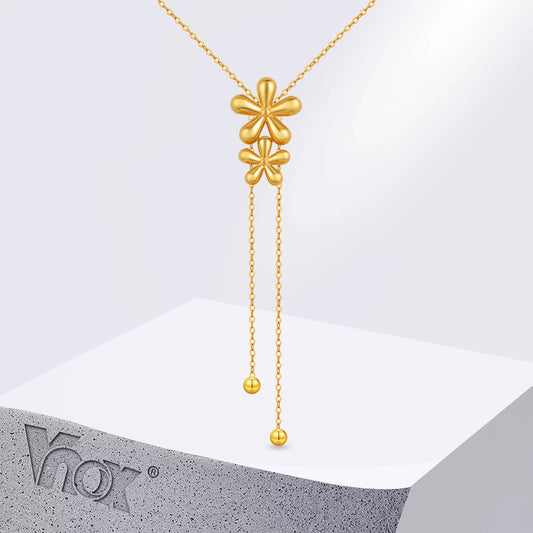 Double Flower Plant Pendant Women Necklace Golden Stainless Steel Chain Neck Exquisite Jewelry Gifts for Girlfriend Mother