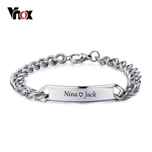 Customize Engrave ID Bar Bracelet for Men Stainless Steel Classic Simple Personalize Name Info Male Jewelry Gift
